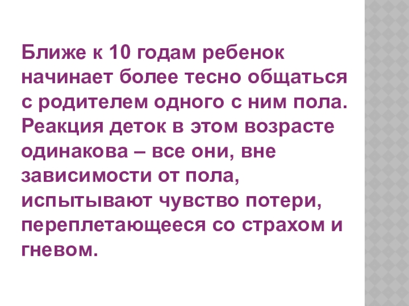 Слайд 13Ближе к 10 годам ребенок начинает более тесно общаться с родителем