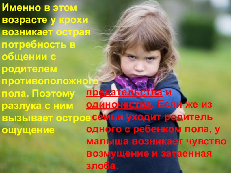 семьи уходит родитель одного с ребенком пола, у малыша возникает чувство возмущение и затаенная злоба.