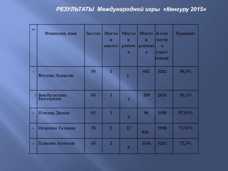 РЕЗУЛЬТАТЫ Международной игры «Кенгуру 2015»