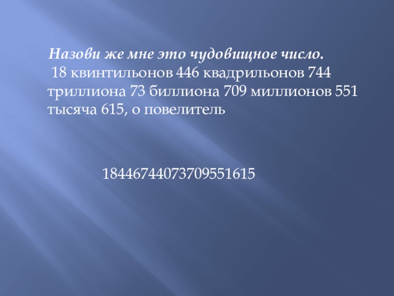 446 квадрильонов 744 триллиона 73 биллиона 709 миллионов 551 тысяча 615, о повелитель