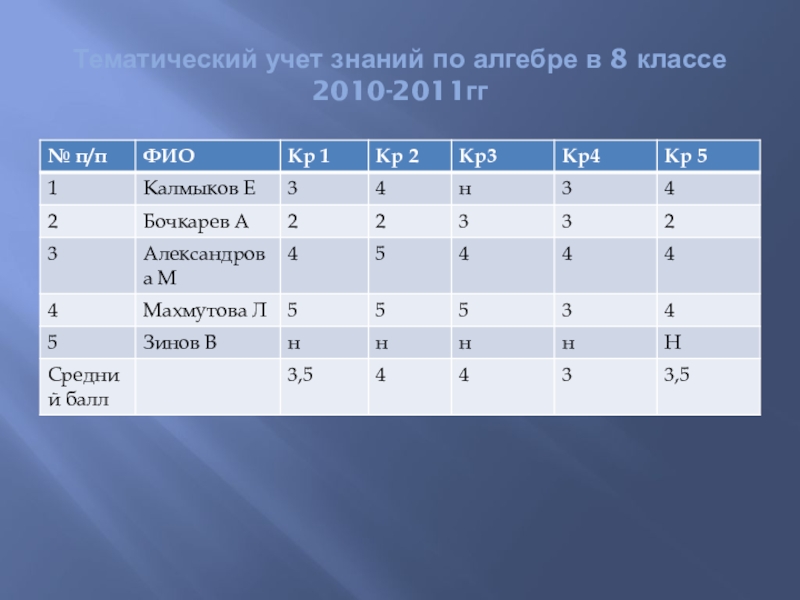 Слайд 12Тематический учет знаний по алгебре в 8 классе 2010-2011гг