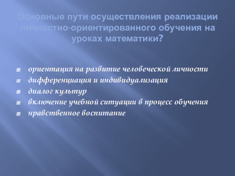 Основные пути осуществления реализации личностно-ориентированного обучения на уроках математики?
