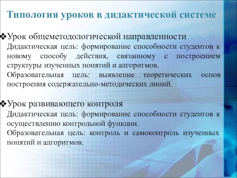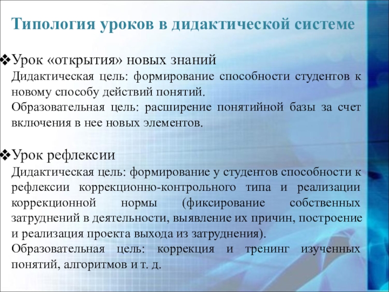 Слайд 13Типология уроков в дидактической системе