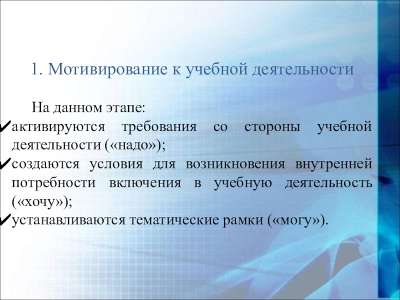 Слайд 161. Мотивирование к учебной деятельности
