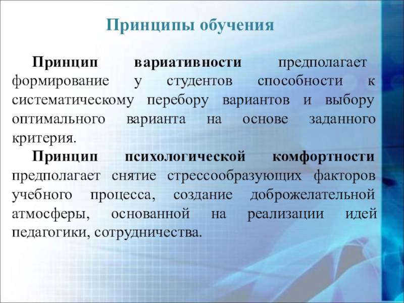 Принцип вариативности предполагает формирование у студентов способности к систематическому перебору