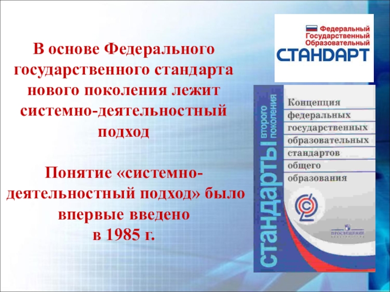 Слайд 5В основе Федерального государственного стандарта нового поколения лежит системно-деятельностный подход