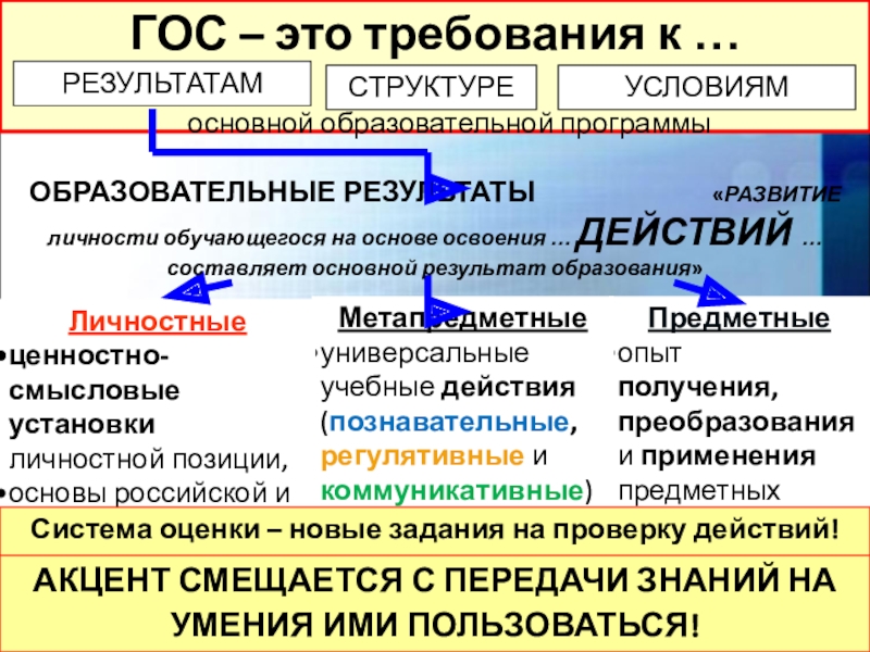 АКЦЕНТ СМЕЩАЕТСЯ С ПЕРЕДАЧИ ЗНАНИЙ НА УМЕНИЯ ИМИ ПОЛЬЗОВАТЬСЯ!