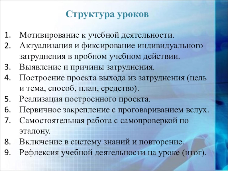 В завершение организуется исполнительная рефлексия хода реализации построенного проекта учебных действий и контрольных процедур.