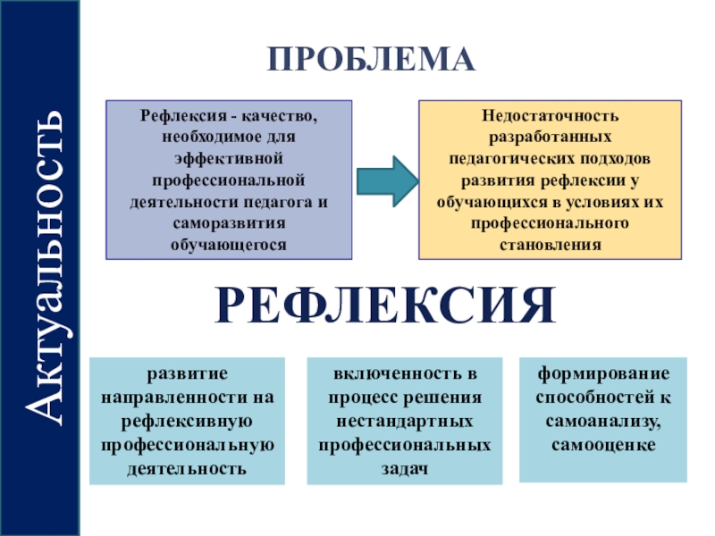 Недостаточность разработанных педагогических подходов развития рефлексии у обучающихся в условиях их профессионального становления