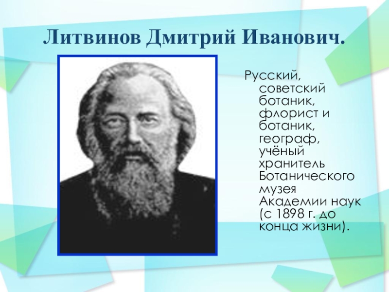 Русский, советский ботаник, флорист и ботаник, географ, учёный хранитель