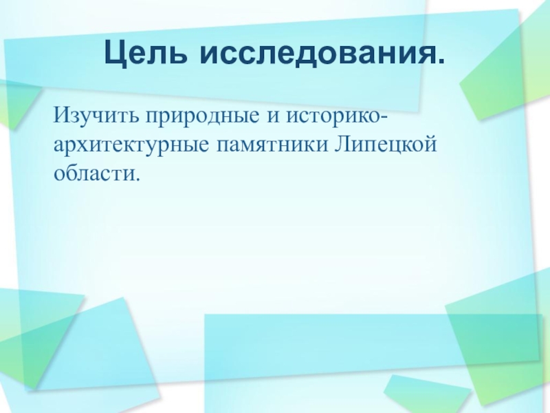 Изучить природные и историко-архитектурные памятники Липецкой области.