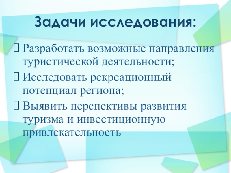 развития туризма и отдыха. В области созданы условия для развития данного вида деятельности.