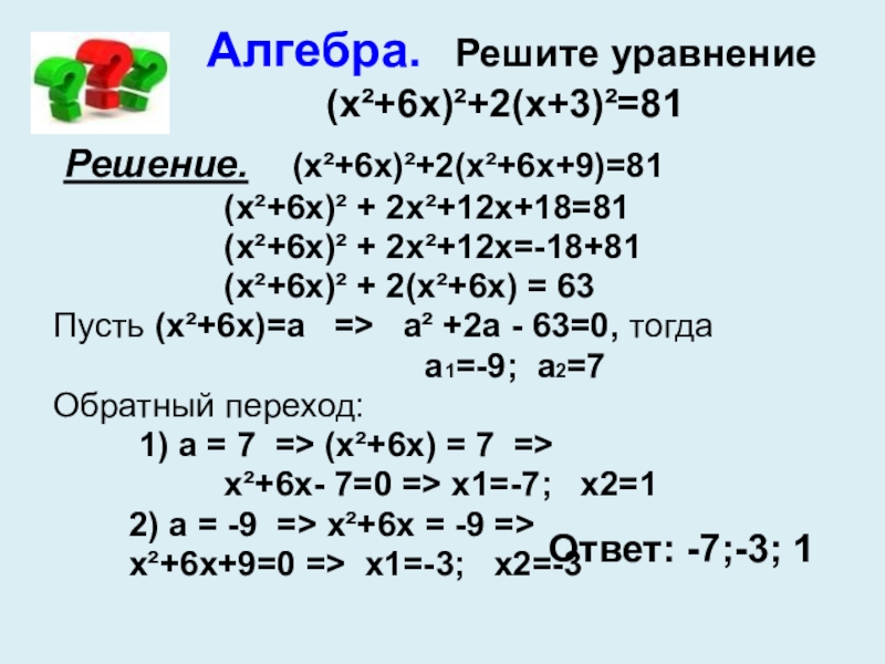Решение. (х²+6х)²+2(х²+6х+9)=81