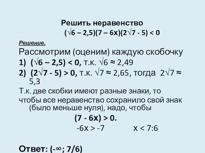 1) (√6 – 2,5) < 0, т.к. √6 ≈ 2,49