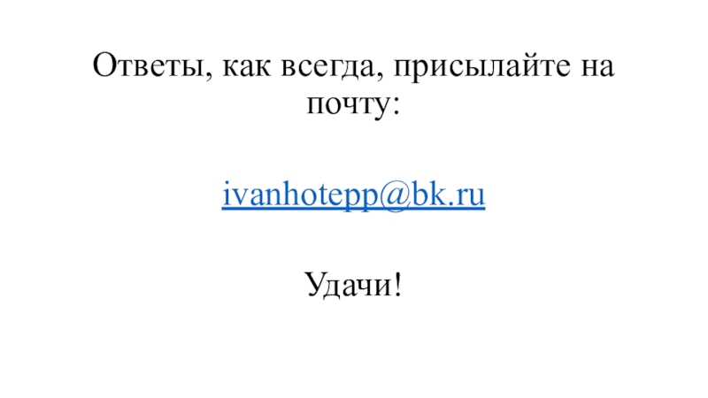 Слайд 7Ответы, как всегда, присылайте на почту: