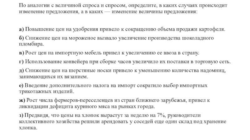 Слайд 6По аналогии с величиной спроса и спросом, определите, в каких случаях