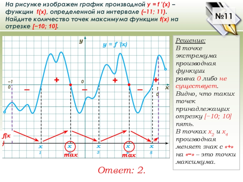В точках х2 и х4 производная меняет знак с «+» на «−» – это точки максимума.