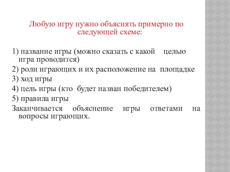 Слайд 6Любую игру нужно объяснять примерно по следующей схеме: