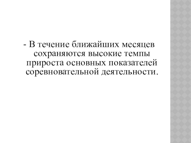 - В течение ближайших месяцев сохраняются высокие темпы прироста основных показателей соревновательной деятельности.
