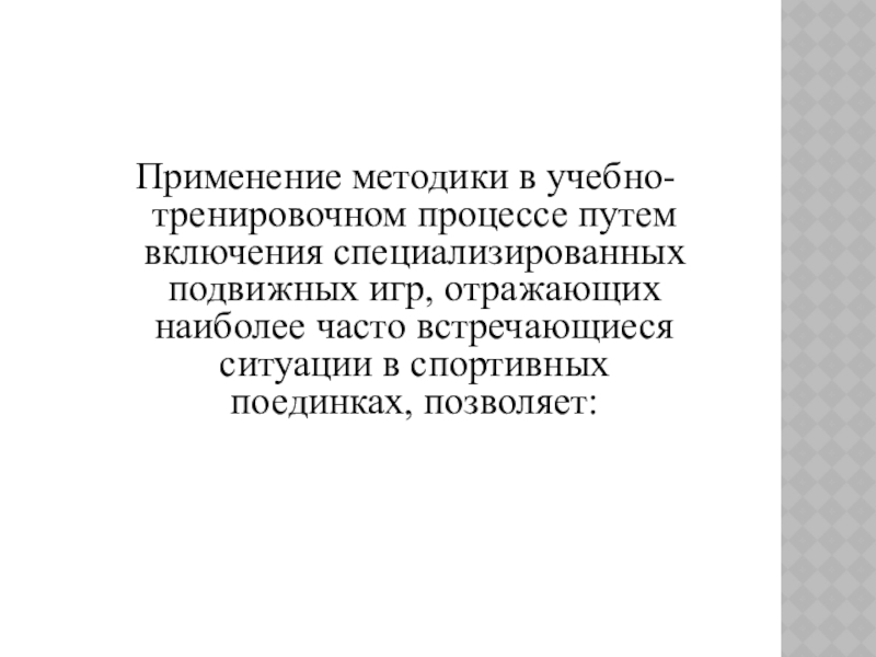 Применение методики в учебно-тренировочном процессе путем включения специализированных подвижных игр,