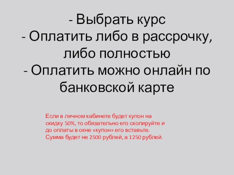 Если в личном кабинете будет купон на скидку 50%, то обязательно его скопируйте и до оплаты в окне «купон» его вставьте.