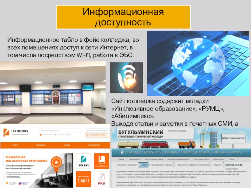 Сайт колледжа содержит вкладки «Инклюзивное образование», «РУМЦ», «Абилимпикс».