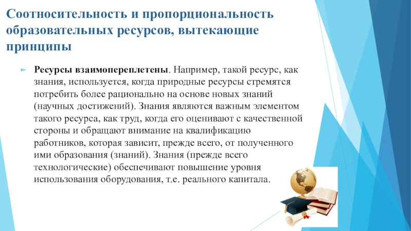 Слайд 10Соотносительность и пропорциональность образовательных ресурсов, вытекающие принципы