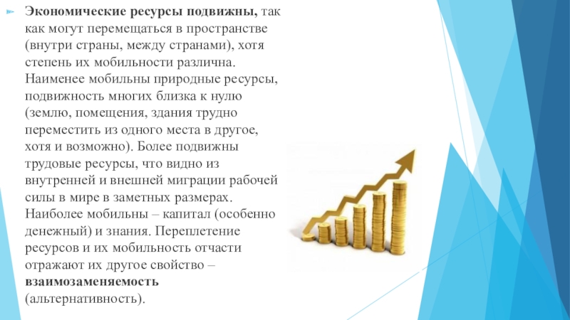 Слайд 11Экономические ресурсы подвижны, так как могут перемещаться в пространстве (внутри страны,