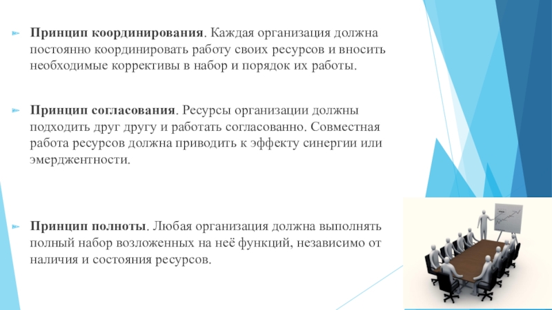 Слайд 13Принцип координирования. Каждая организация должна постоянно координировать работу своих ресурсов и