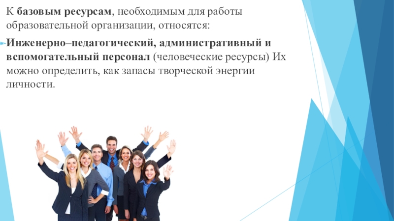 Слайд 2К базовым ресурсам, необходимым для работы образовательной организации, относятся: