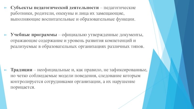 Слайд 16Субъекты педагогической деятельности – педагогические работники, родители, опекуны и лица их