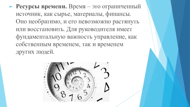 Слайд 7Ресурсы времени. Время – это ограниченный источник, как сырье, материалы, финансы.