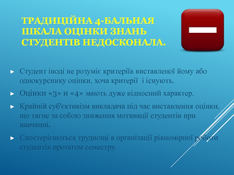 Слайд 2ТРАДИЦІЙНА 4-БАЛЬНАЯ ШКАЛА ОЦІНКИ ЗНАНЬ СТУДЕНТІВ НЕДОСКОНАЛА.