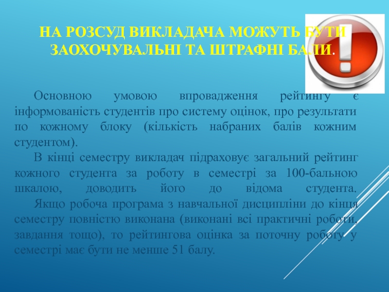 Слайд 9НА РОЗСУД ВИКЛАДАЧА МОЖУТЬ БУТИ ЗАОХОЧУВАЛЬНІ ТА ШТРАФНІ БАЛИ.