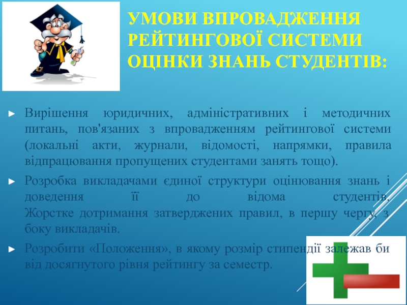 Слайд 14УМОВИ ВПРОВАДЖЕННЯ РЕЙТИНГОВОЇ СИСТЕМИ ОЦІНКИ ЗНАНЬ СТУДЕНТІВ: