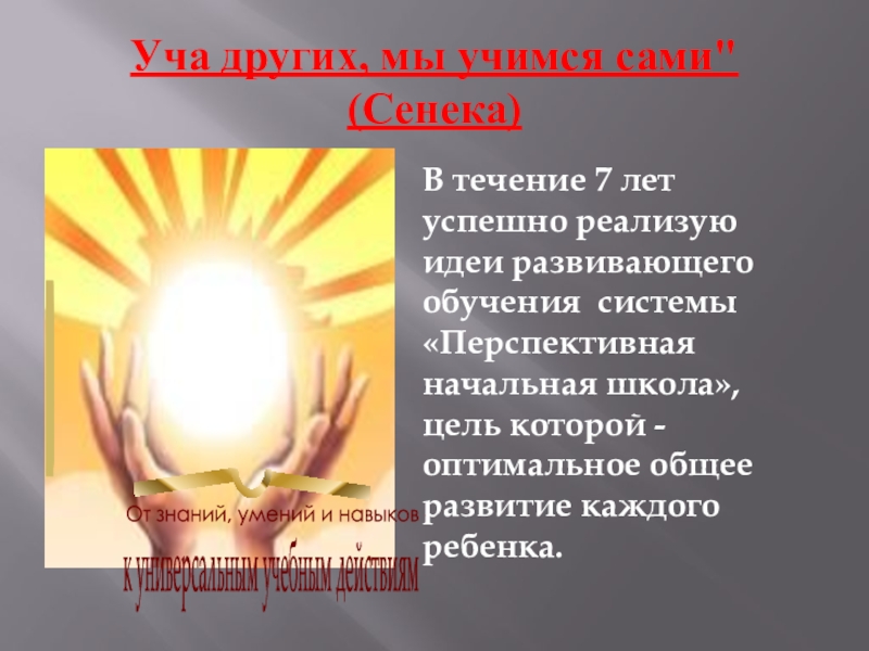 идеи развивающего обучения системы«Перспективная начальная школа», цель которой - оптимальное общее развитие каждого ребенка.
