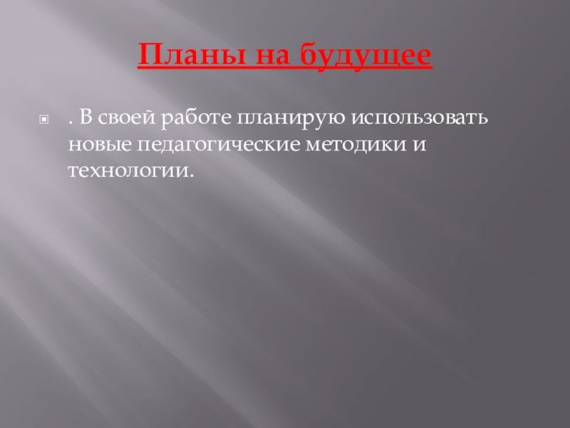 Планы на будущее. В своей работе планирую использовать новые педагогические методики и технологии.