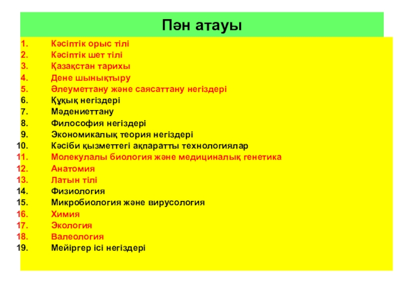 Сараланған сынақтар: құқық негіздері, кәсіптік шет тілі, молекулалы биология және медициналық генетика, микробиология және вирусология, химия.