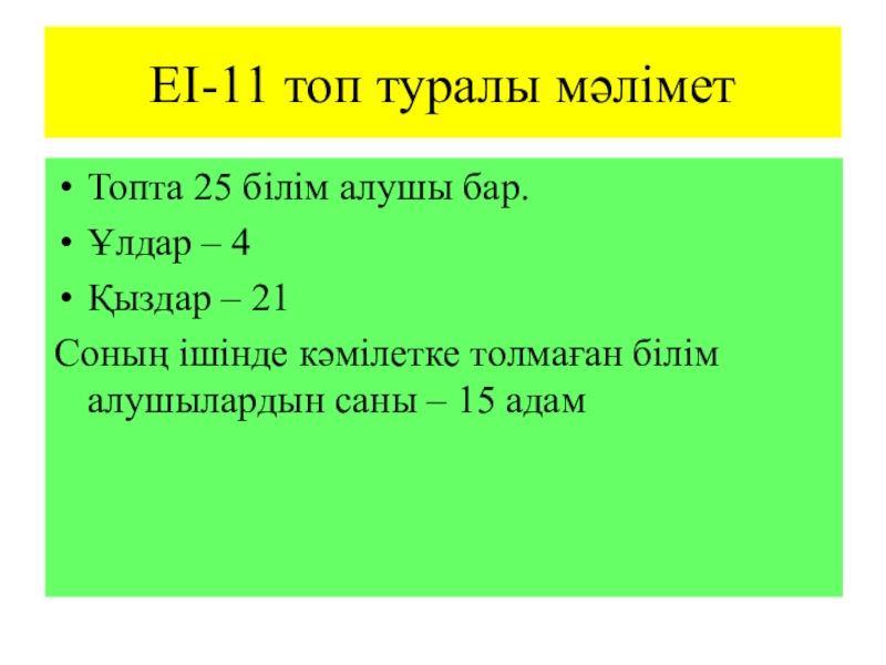Слайд 4ЕІ-11 топ туралы мәлімет