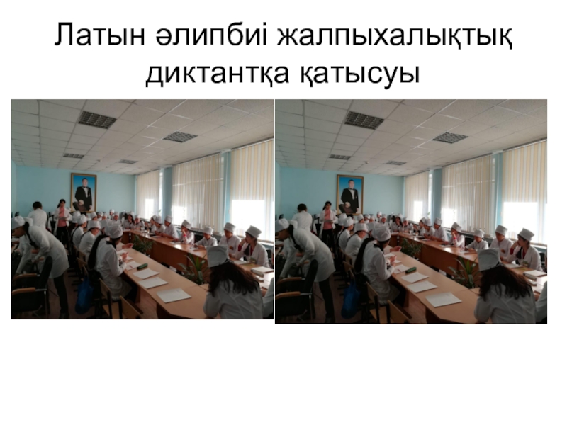 Слайд 13Латын әлипбиі жалпыхалықтық диктантқа қатысуы