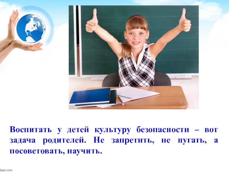 Слайд 12Воспитать у детей культуру безопасности – вот задача родителей. Не запретить,