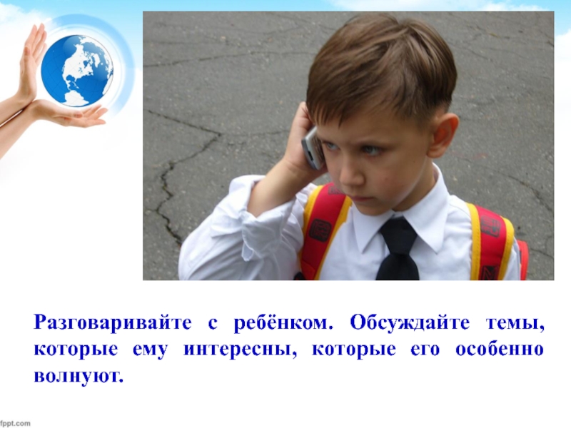 Разговаривайте с ребёнком. Обсуждайте темы, которые ему интересны, которые его особенно волнуют.