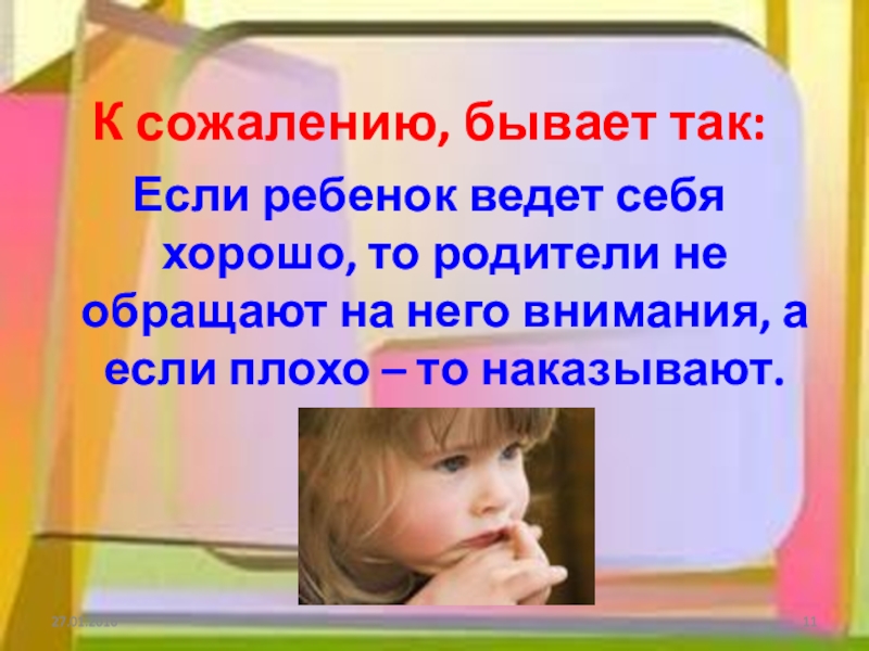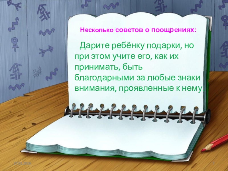 Слайд 7 Дарите ребёнку подарки, но при этом учите
