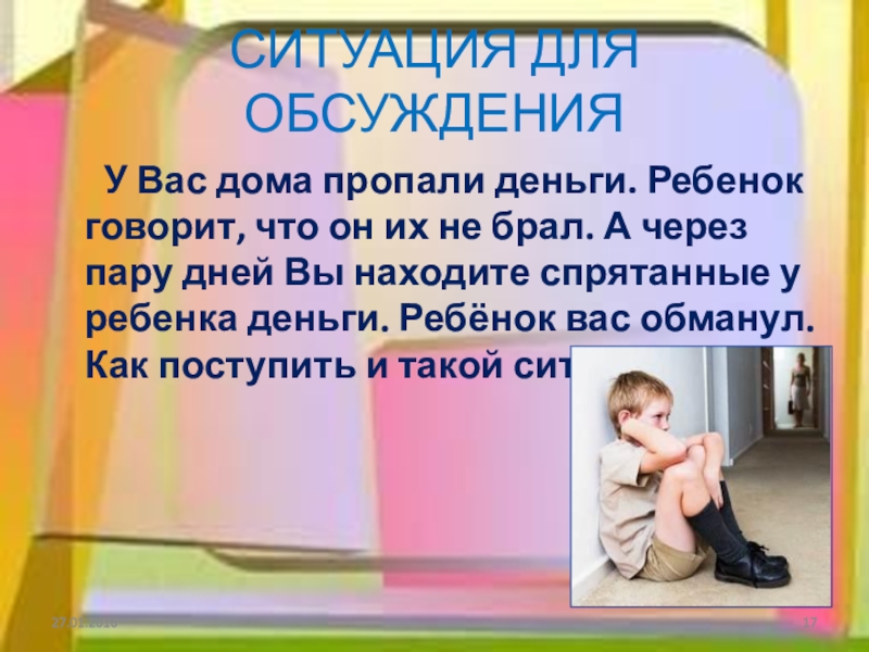 говорит, что он их не брал. А через пару дней Вы находите спрятанные у ребенка деньги. Ребёнок вас обманул. Как поступить и такой ситуации?