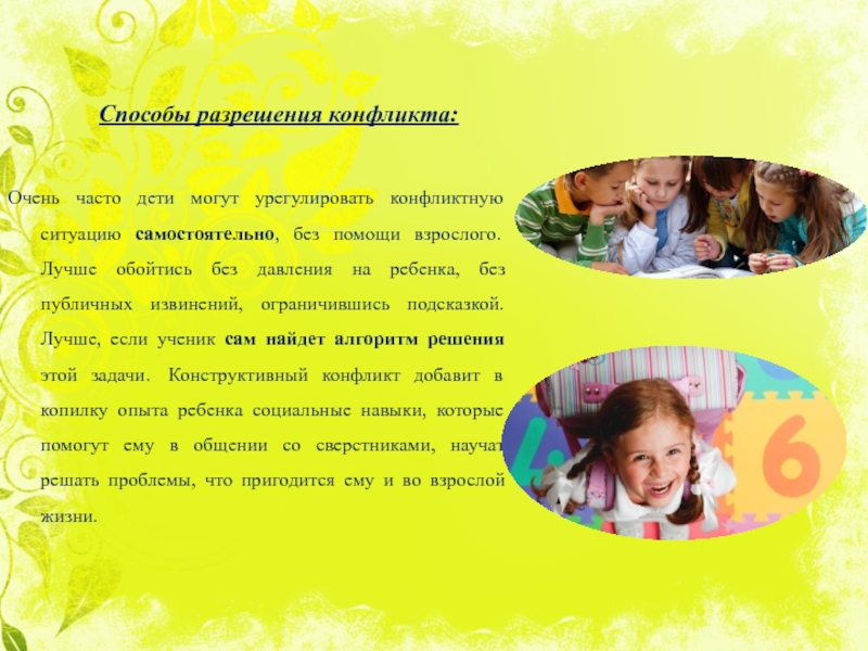 Обучение ребенка конструктивным поведенческим реакциям в конфликтной ситуации.