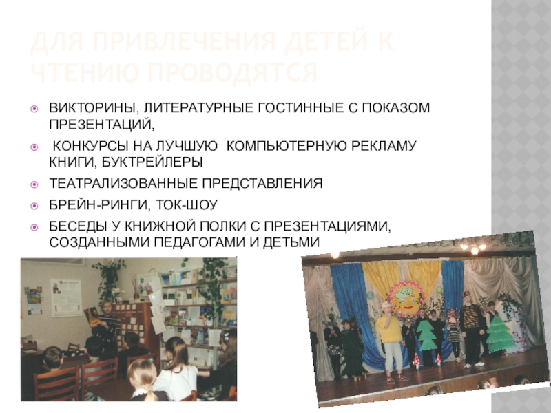 Слайд 18ДЛЯ ПРИВЛЕЧЕНИЯ ДЕТЕЙ К ЧТЕНИЮ ПРОВОДЯТСЯ