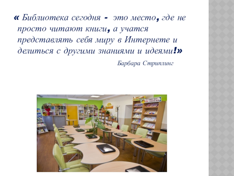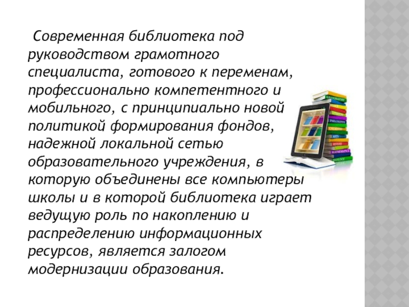 Слайд 27 Современная библиотека под руководством грамотного специалиста, готового к переменам,