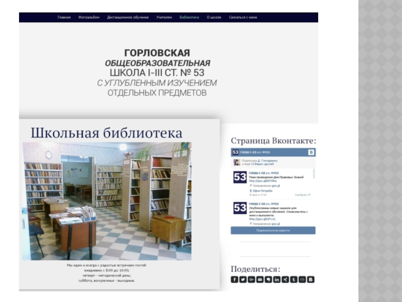 Библиотека и библиотекарь могут играть новую роль в процессе организации всевозможных читательских исследований, консультирования и дистанционного обучения учителей и учащихся по вопросам чтения, новых поступлений, формирования информационной культуры – через блоги, вики-среды и возможности социальных сервисов , сотрудничество с детскими и публичными библиотеками, привлечение учителей и родителей к совместным сетевым инициативам.