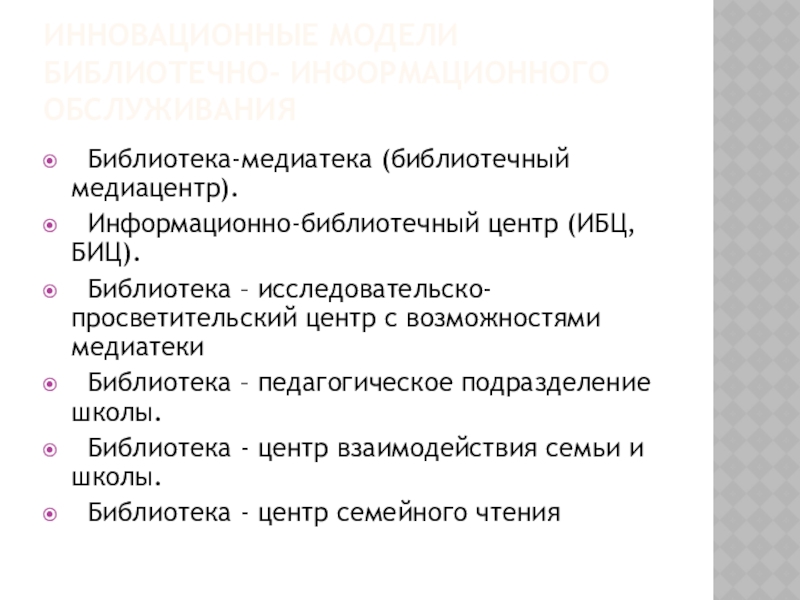 Слайд 8Инновационные модели библиотечно- информационного обслуживания