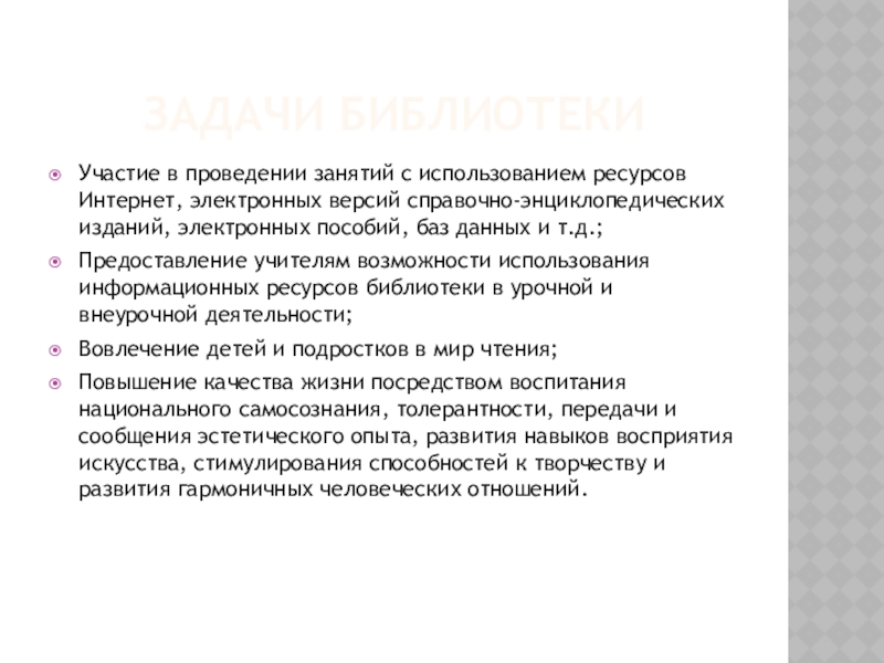 Предоставление учителям возможности использования информационных ресурсов библиотеки в урочной и внеурочной деятельности;